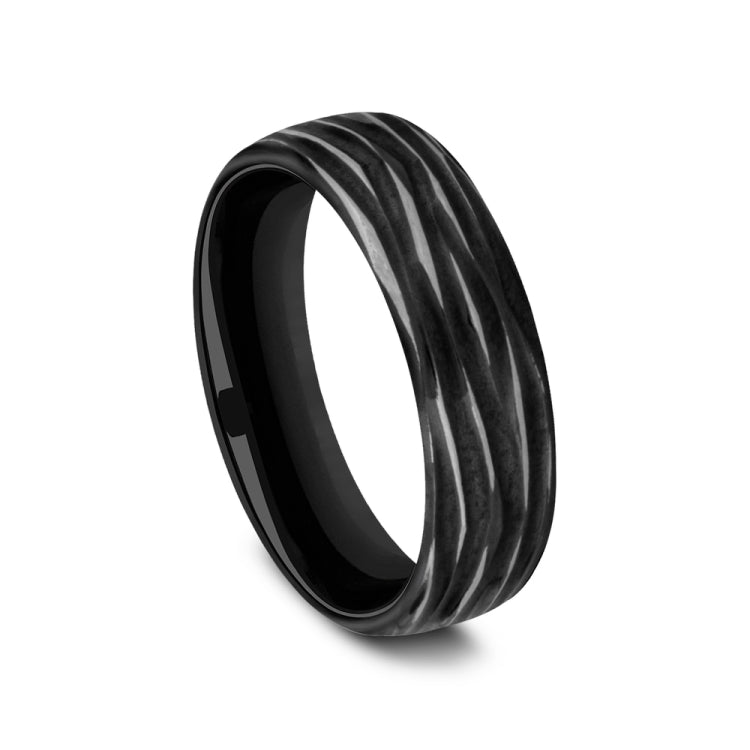 6.5mm, European comfort fitBlack TitaniumHorizontal bark pattern