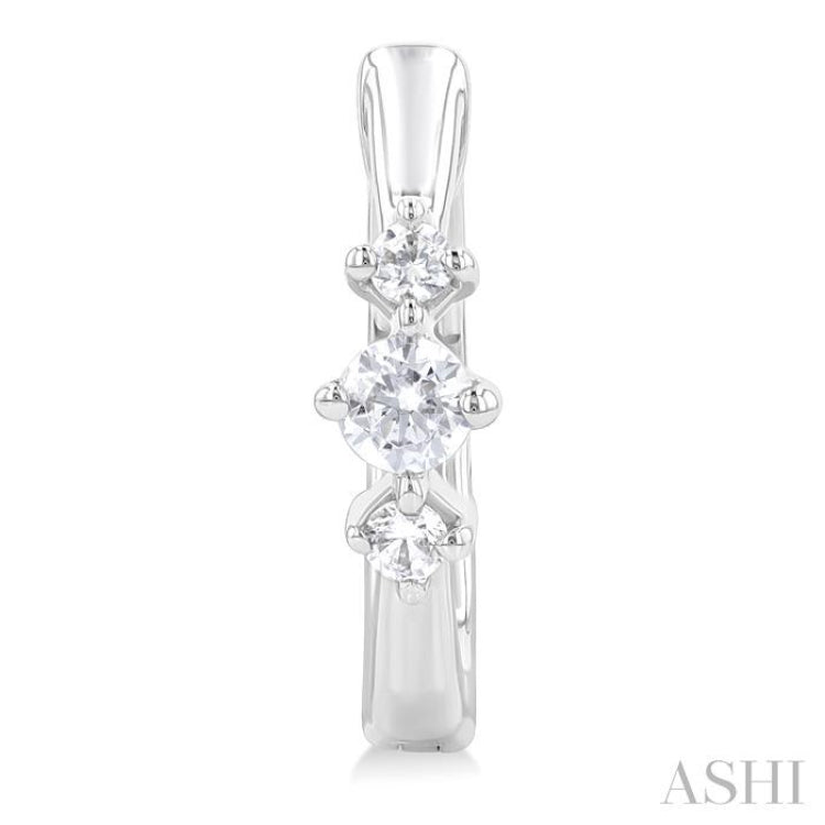 1/4 Ctw Three Stone Round Cut Diamond Hoop Earrings in 10K White Gold