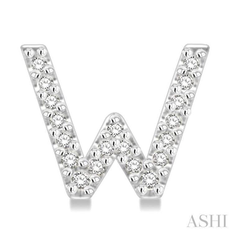 1/8 Ctw Initial 'W' Round Cut Diamond Earrings in 10K White Gold