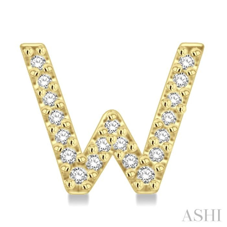 1/8 Ctw Initial 'W' Round Cut Diamond Earrings in 10K Yellow Gold