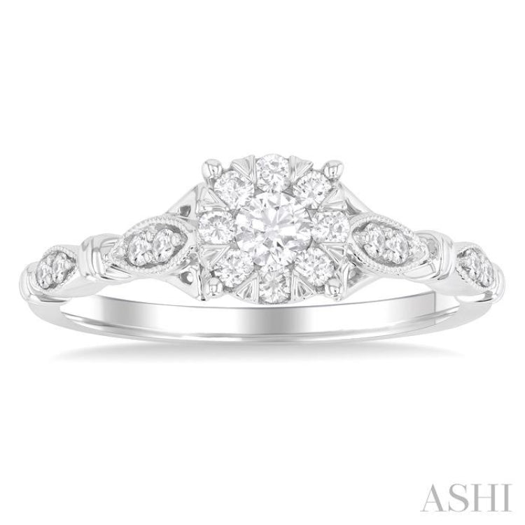 3/8 Ctw Round Lovebright Diamond Engagement Ring in 14K White Gold