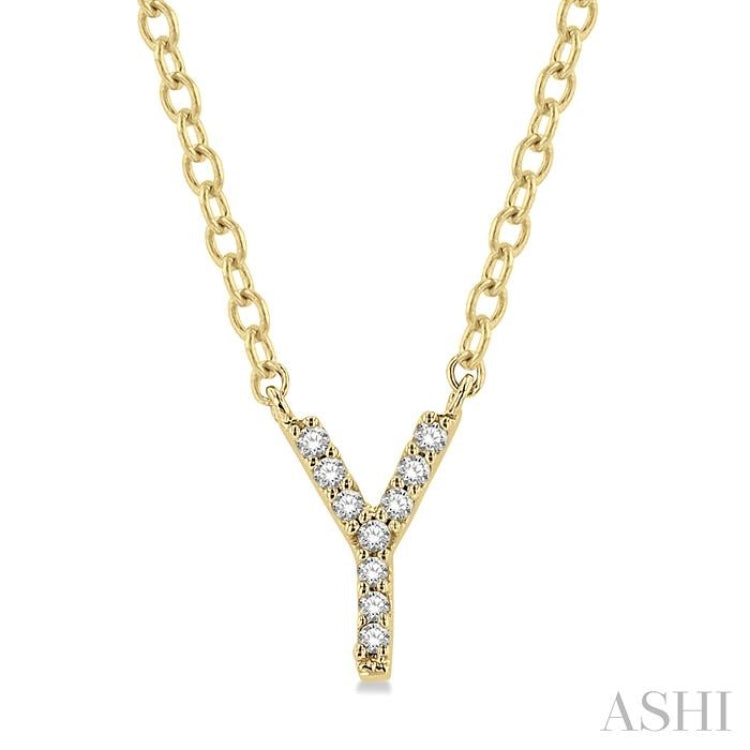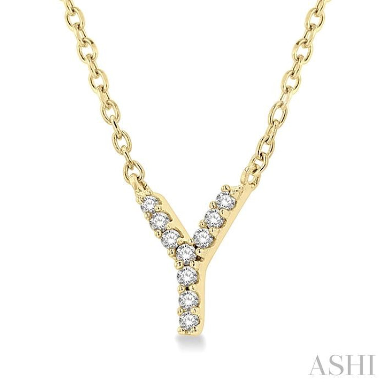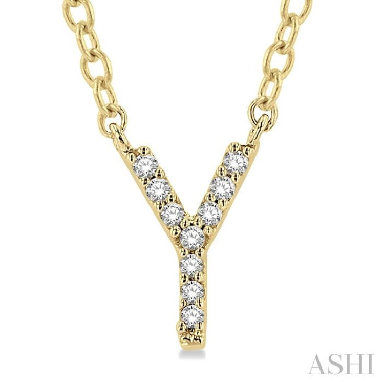 1/20 Ctw Initial 'Y' Round Cut Diamond Pendant With Chain in 10K Yellow Gold