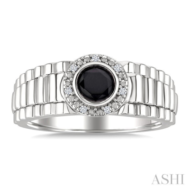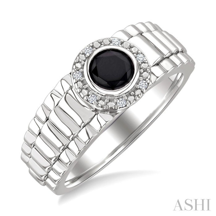 6 MM Round Shape Onyx and 1/20 Ctw Round Cut Diamond Semi-precious Men's Ring in Sterling Silver