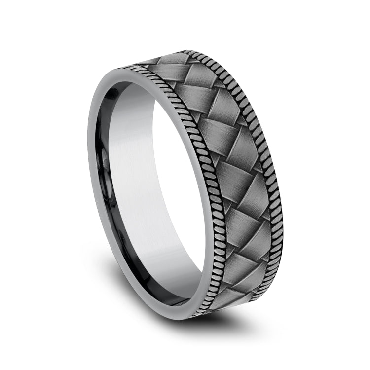 7mm, Comfort fitGrey TantalumBasket weave pattern